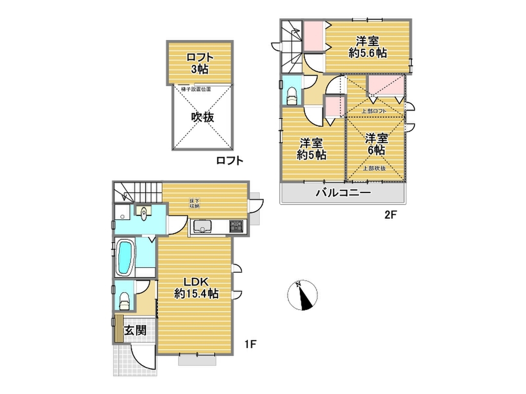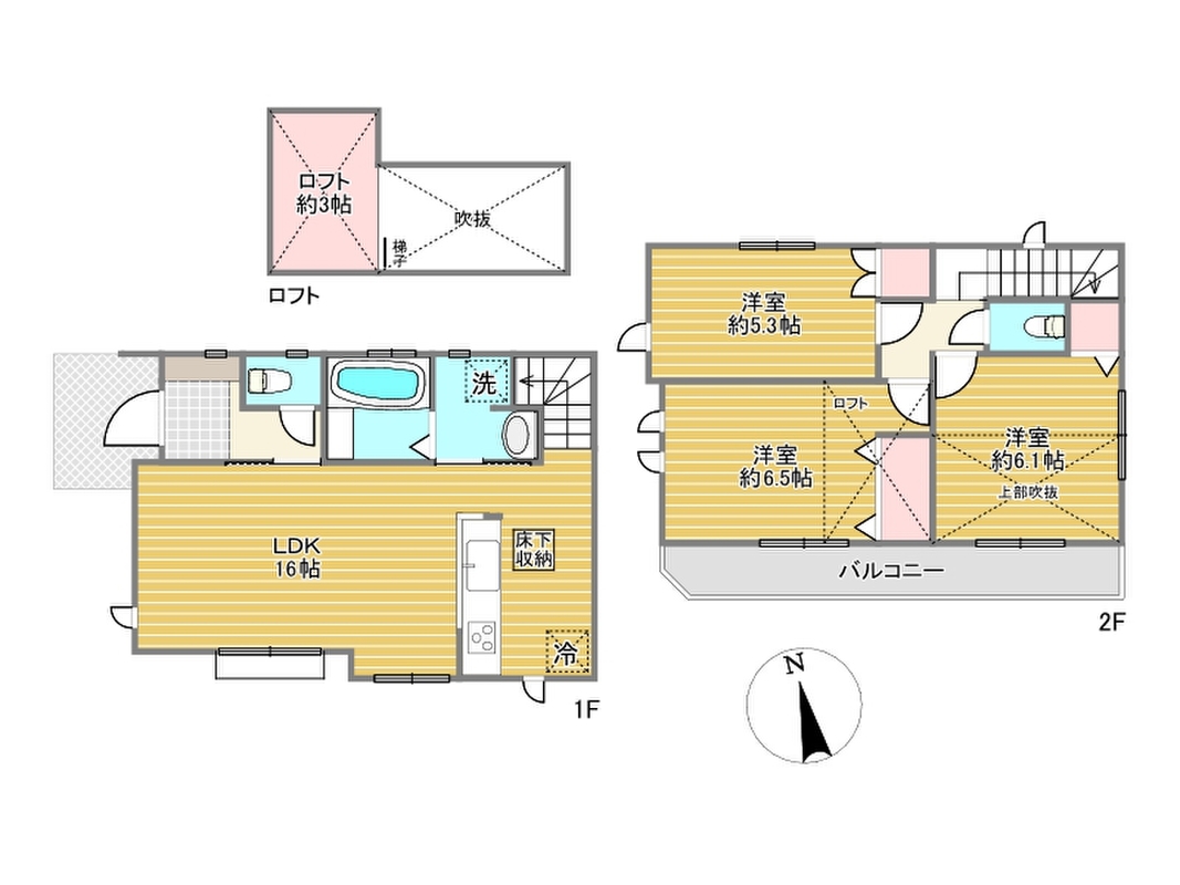 床下収納やロフト完備で収納豊富!