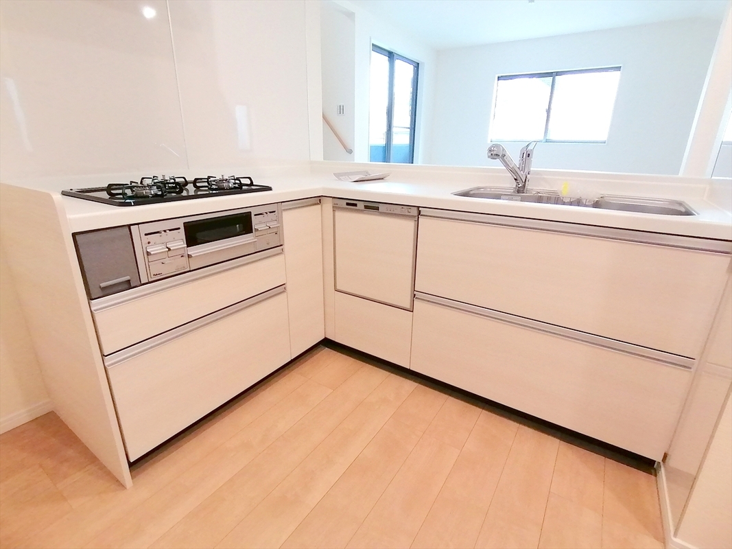 徒歩5分圏内にスーパー、コンビニ、郵便局が揃う利便性の高い立地です!作業動線が短く、スペースが広々使えるL字キッチン採用!食洗機付きです