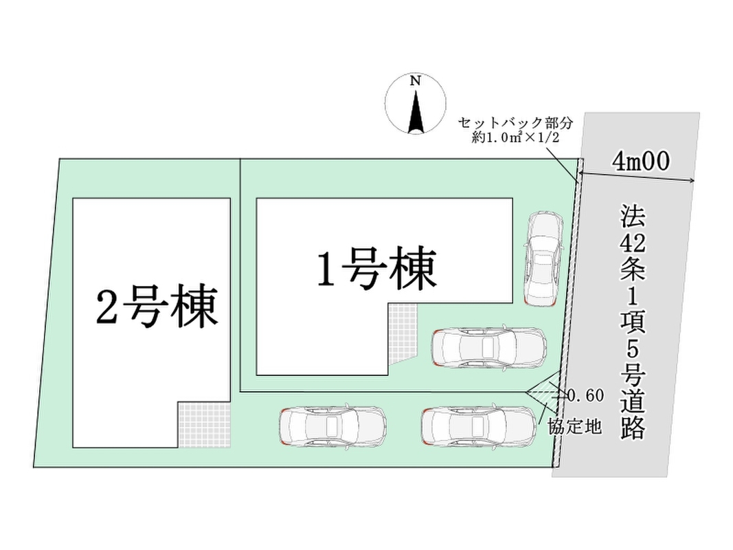 | 駐車場 | 2台 | 道路の幅員 | 東側4m |