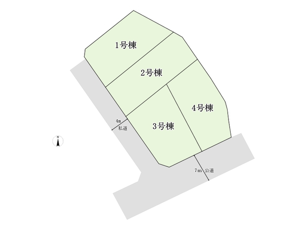 | 駐車場 | 2台 | 道路の幅員 | 南側約7m公道 西側約4m私道 |