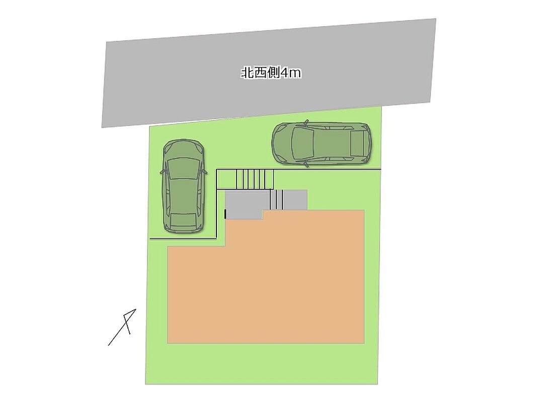 | 駐車場 | 2台 | 道路の幅員 | 北西側4m(但し書き道路) |