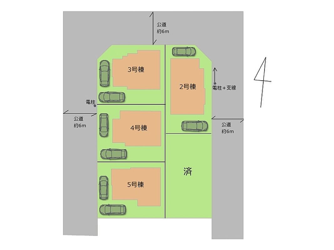 | 駐車場 | 2台 | 道路の幅員 | 東側6m公道 北側6m公道 西側6m公道 |