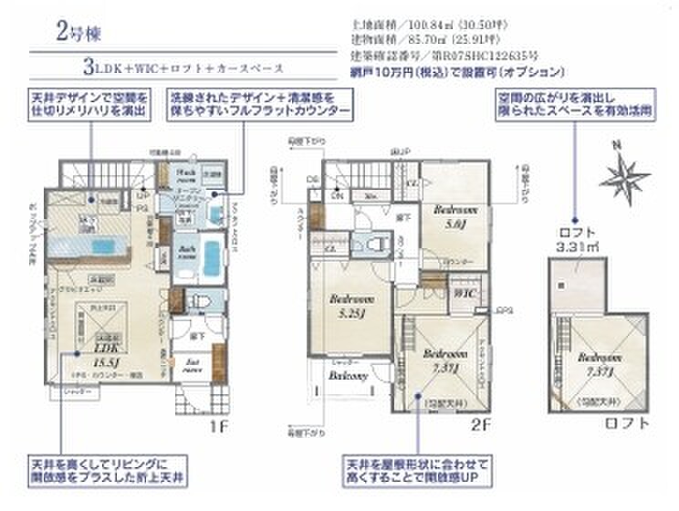 | 建物面積 | 81.14m2~85.7m2 | 土地面積 | 100.84m2~110.13m2 |