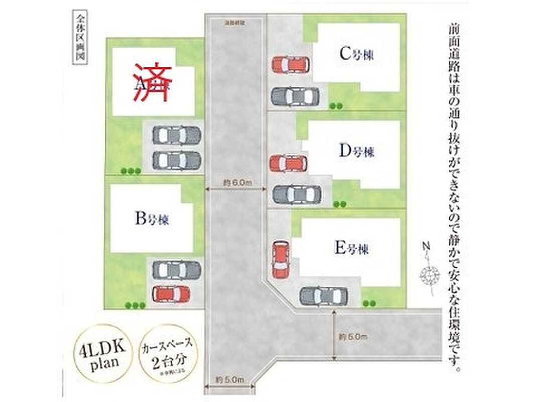 | 駐車場 | 2台 | 道路の幅員 | 南側5m公道 分譲地内6m公道 |