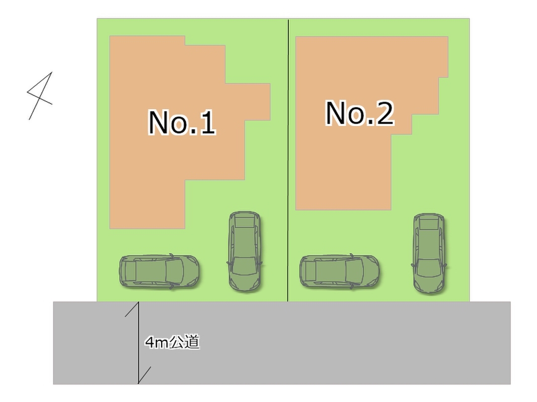 | 駐車場 | 2台 | 道路の幅員 | 南東側約4.0m |