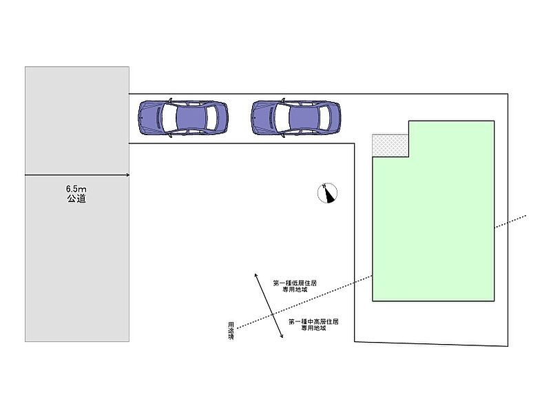 | 駐車場 | 2台 | 道路の幅員 | 公道西側6.5m |