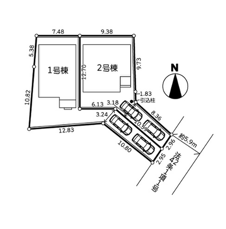| 駐車場 | 2台 | 道路の幅員 | 南東側約5.9m |