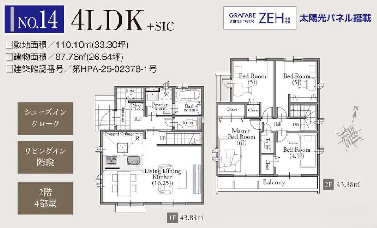 14号棟(ご成約済み) 間取り 4LDK+SIC 価格 未定 建物面積 87.76m2 土地面積 110.10m2 -