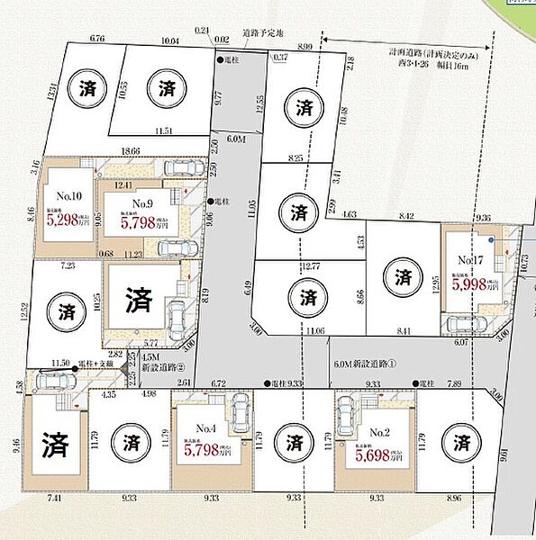 | 駐車場 | 1台 | 道路の幅員 | 道路幅:4.7m~6m、東側4.79m公道(セットバック後)、分譲地内6.0m新設道路 |