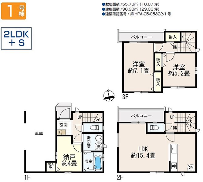 | 建物面積 | 96.98m2 | 土地面積 | 55.78m2 |