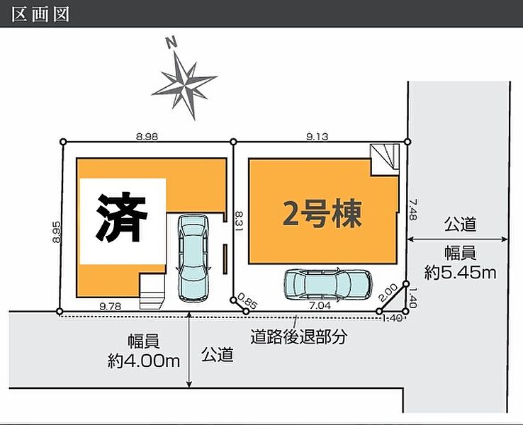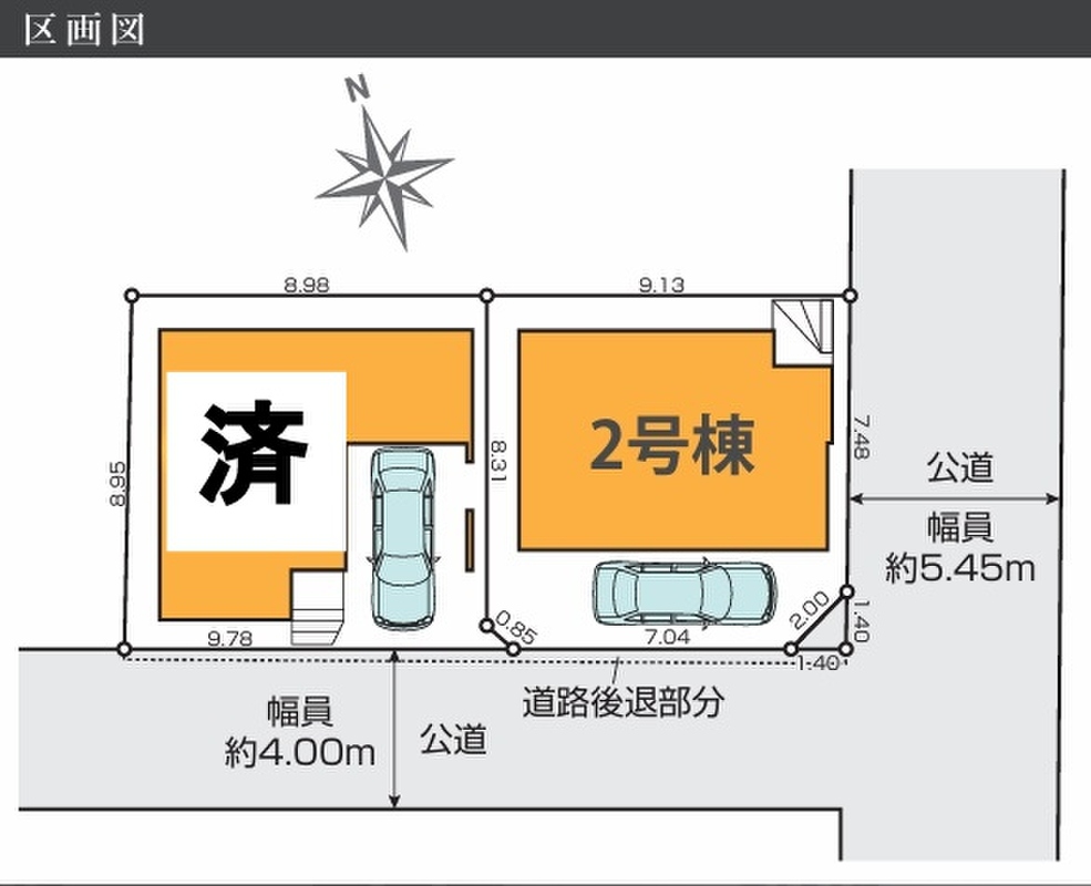 | 駐車場 | 1台 | 道路の幅員 | 南側約4m公道、東側約5.4m公道 |