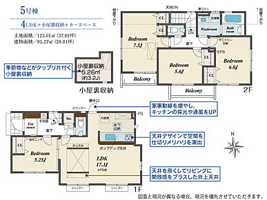 5号棟 間取り 4LDK+小屋裏収納 価格 5880万円 建物面積 95.27m2 土地面積 125.01m2