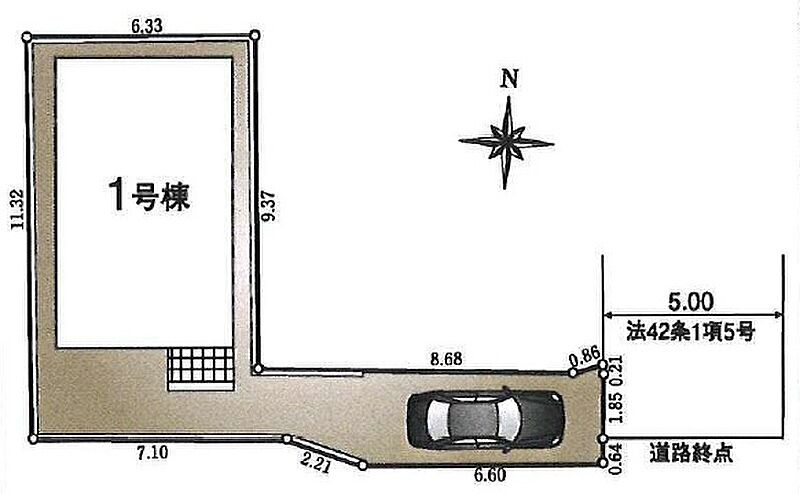 | 駐車場 | 1台 | 道路の幅員 | 東側約5m私道、私道持分:257m2×78567分の315有り |