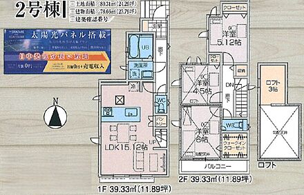 2号棟 間取り 3LDK+ロフト 価格 未定 建物面積 78.66m2 土地面積 80.31m2 -