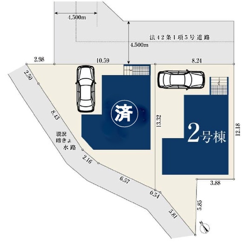 | 駐車場 | 1台 | 道路の幅員 | 西側現況約2.1m(公道認定外)、北東側現況約4.5m私道 |