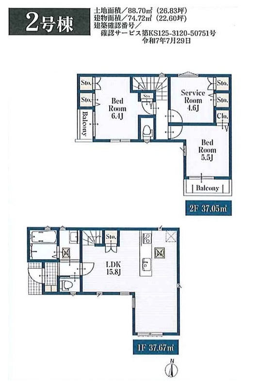 2号棟(ご成約済み) 間取り 2SLDK 価格 未定 建物面積 74.72m2 土地面積 88.70m2 -