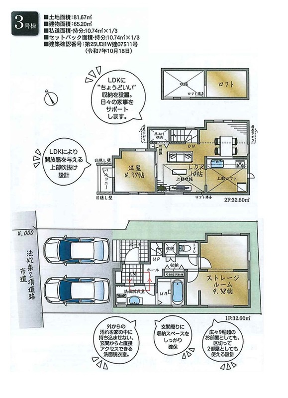 3号棟 間取り 1SLDK+ロフト 価格 6390万円 建物面積 65.20m2 土地面積 81.67m2