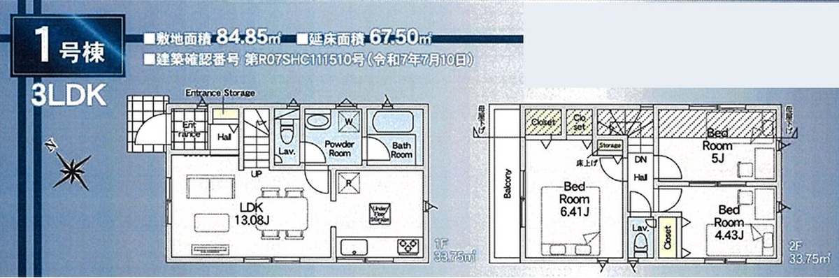 1号棟(ご成約済み) 間取り 3LDK 価格 未定 建物面積 67.50m2 土地面積 84.85m2 -
