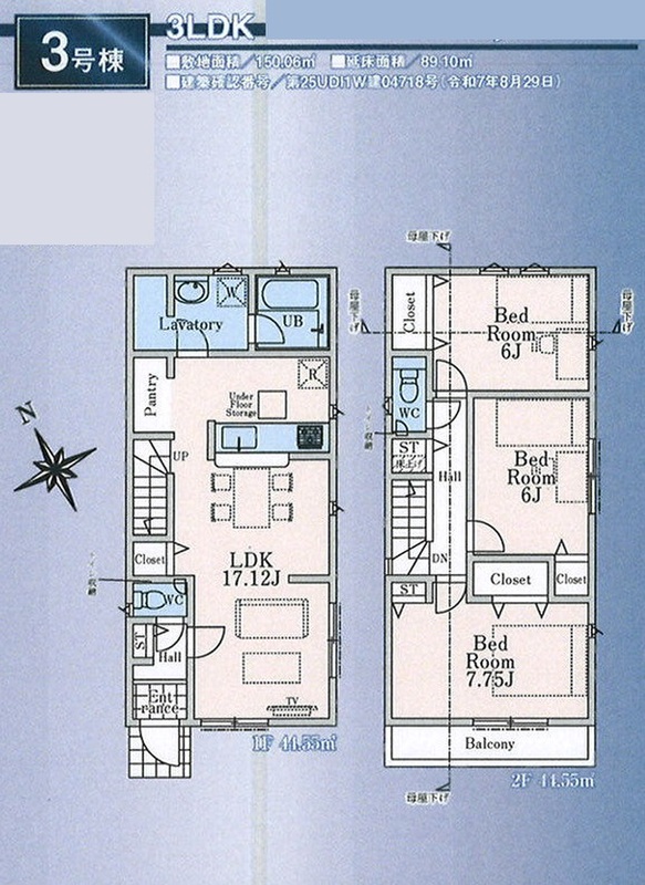 | 建物面積 | 89.10m2・94.77m2 | 土地面積 | 125.99m2・150.06m2 |