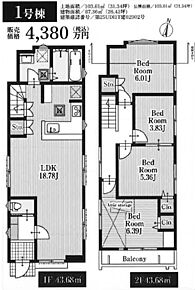 1号棟 間取り 4LDK+小屋裏収納 価格 4680万円 建物面積 87.36m2 土地面積 103.61m2