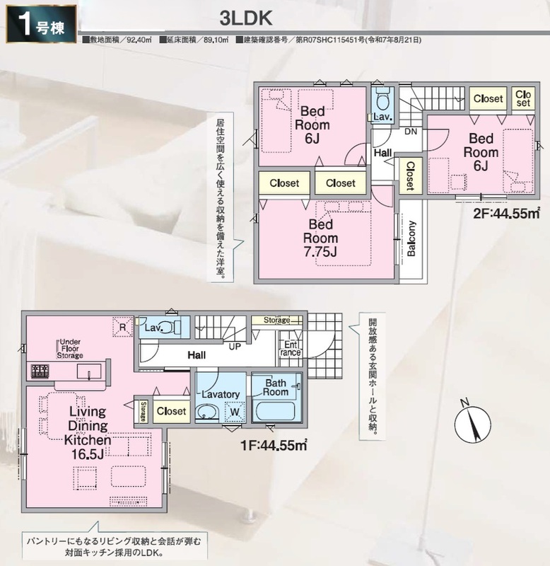 1号棟 間取り 3LDK 価格 5380万円 建物面積 89.10m2 土地面積 92.40m2 -