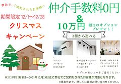 ☆【X’mas企画♪お得なWキャンペーン開催】☆「仲介手数料3%+6万円の消費税が0円」+「選べるオプション10万円分無料サービス」(お好きなオプションをフリーチョイスできます)詳細はお問い合わせください♪※キャンペーン期限は本日より2025年12月28日までに弊社でご成約いただいた方に限ります♪サンタもびっくり!12月限定のBIGセール企画です!少しでもお得に購入されたい方はお気軽にご連絡お待ちしております!