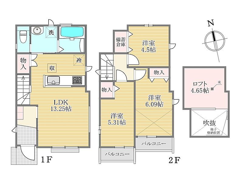A号棟 間取り 3LDK+ロフト 価格 5480万円 建物面積 62.71m2 土地面積 77.38m2 -