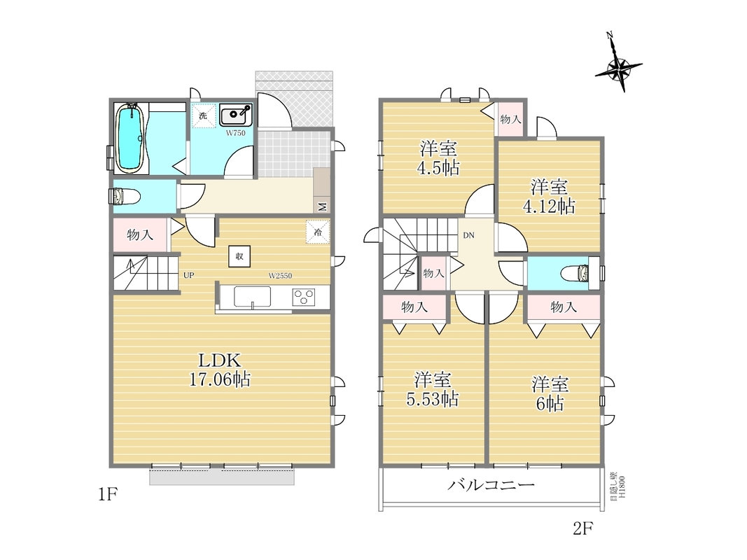 1-M号棟 間取り 4LDK 価格 6490万円 建物面積 87.56m2 土地面積 110.02m2 -