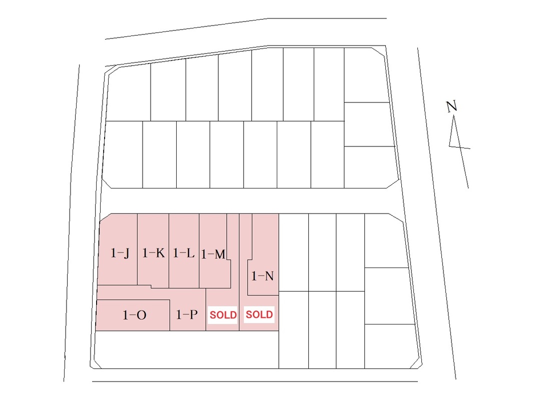 | 駐車場 | 2台 | 道路の幅員 | 西側約5m公道、北側約5m新設道路 |