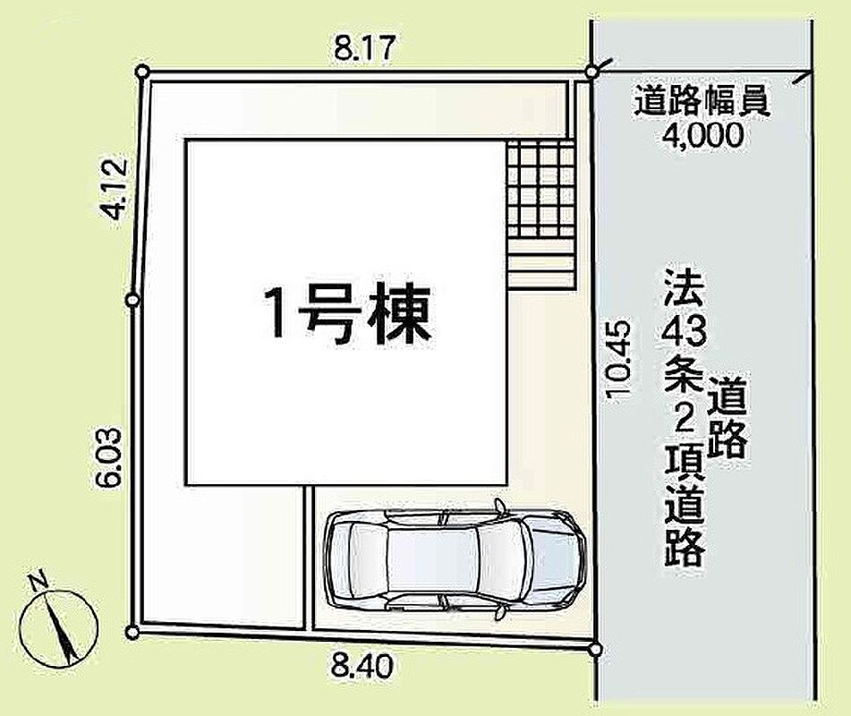| 駐車場 | 1台 | 道路の幅員 | 南東側4m私道、私道持分11.32m2有り、セットバック持分12.72m2有り |