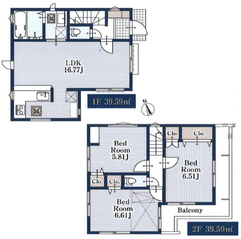 1号棟 間取り 3LDK+小屋裏収納 価格 5980万円 建物面積 79.18m2 土地面積 99.07m2 -