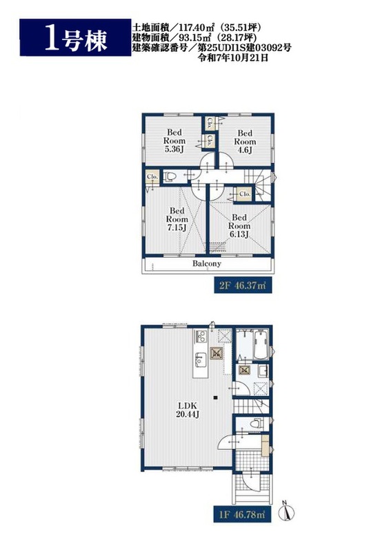 | 建物面積 | 74.21m2・75.24m2 | 土地面積 | 117.40m2 |
