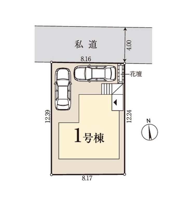 | 駐車場 | 2台 | 道路の幅員 | 北側4m私道(持分:396.82m2×3446/79364) |