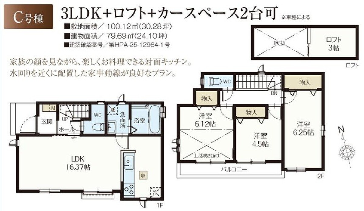 C号棟 間取り 3LDK+ロフト 価格 6790万円 建物面積 79.69m2 土地面積 100.12m2 -