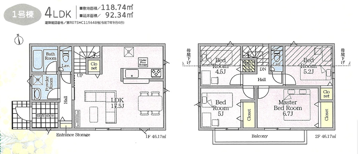 1号棟 間取り 4LDK 価格 7790万円 建物面積 92.34m2 土地面積 118.74m2 -