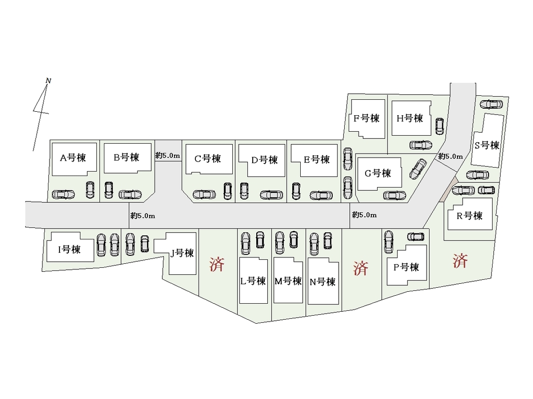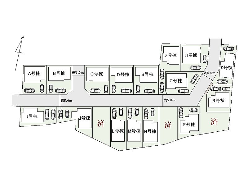 | 駐車場 | 1台 ~ 2台 | 道路の幅員 | 分譲地内約5.0m公道 |