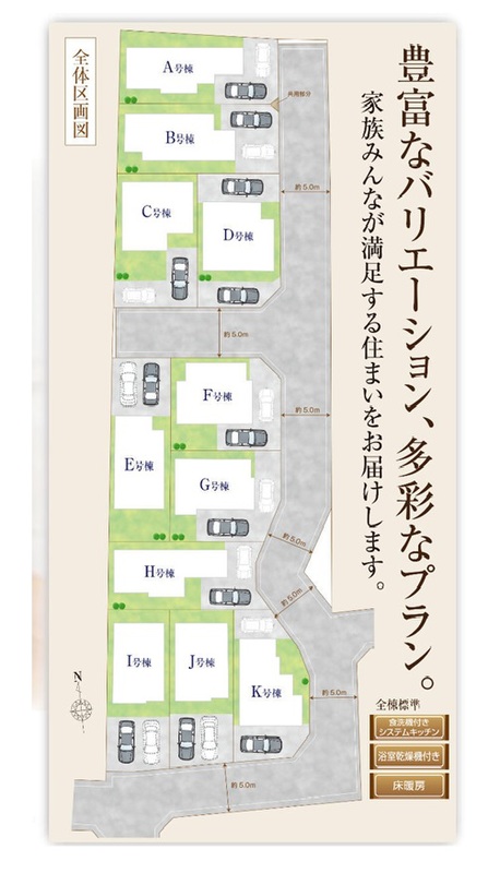16帖以上のLDKに居室が4部屋!各棟こだわりの間取りとなっております!車種にもよりますが全棟駐車2台可能!住宅性能評価6項目において最高等級を取得!耐震性などに優れた確かな品質の住まいです!