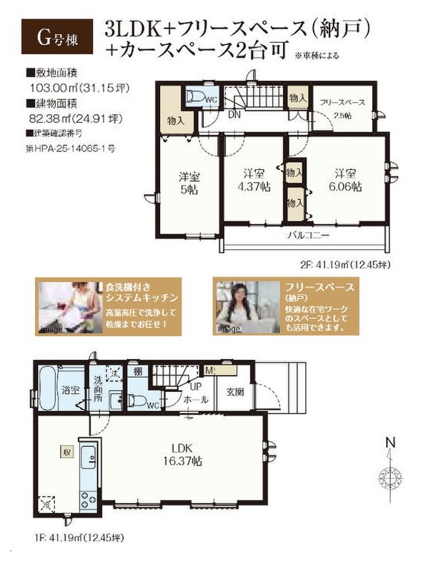 G号棟 間取り 3LDK+S 価格 6390万円 建物面積 82.38m2 土地面積 103.00m2 -