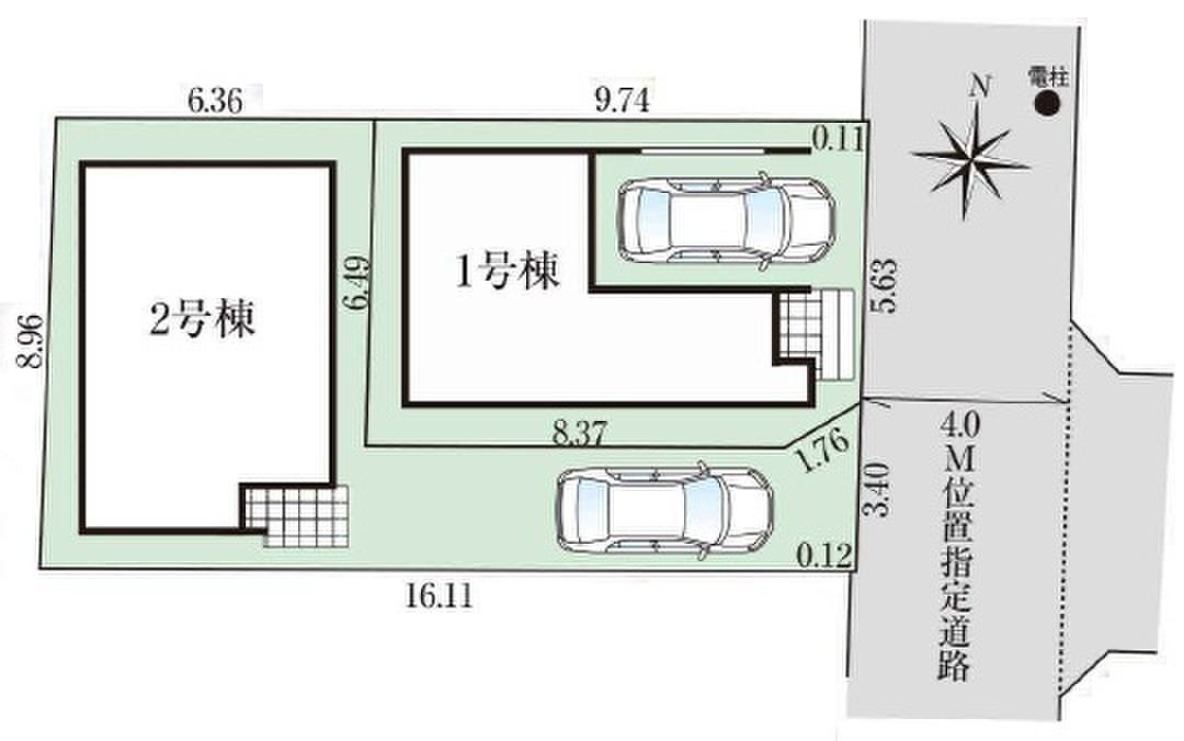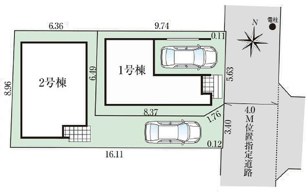 | 建物面積 | 95.85m2・104.85m2(車庫部分12.42m2含む) | 土地面積 | 63.61m2・82.49m2 |