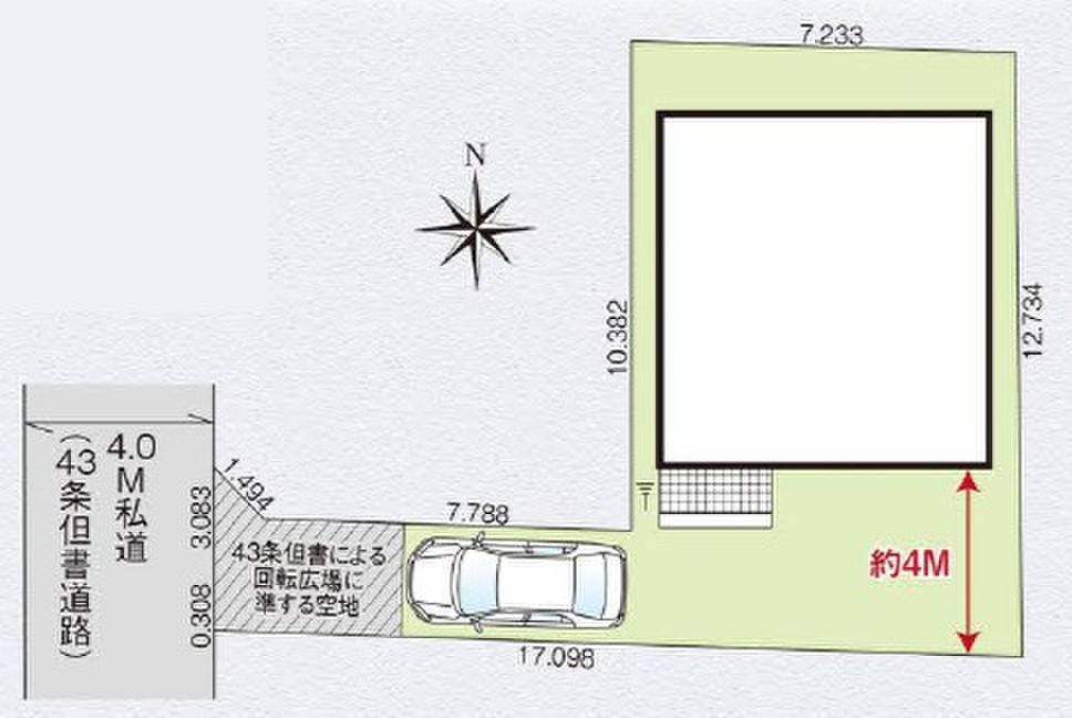 | 駐車場 | 1台 | 道路の幅員 | 西側3.96m私道 |
