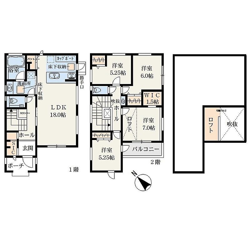 LDK広々18帖!ロフト付きの大型4LDK!WICやSIC、パントリーなど豊富な収納スペース!耐震等級3、断熱性能等級5、一次エネルギー等級6を取得した安心な邸宅です!