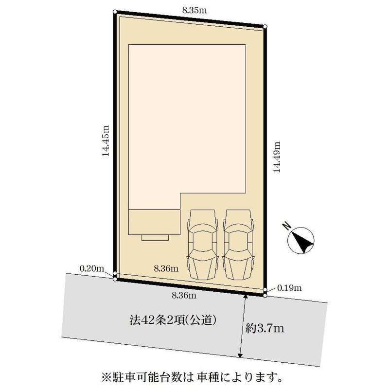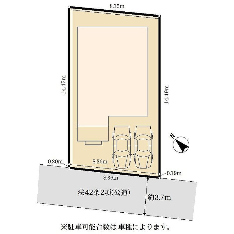 | 駐車場 | 1台 ~ 2台 | 道路の幅員 | 南西側約3.7m公道 |
