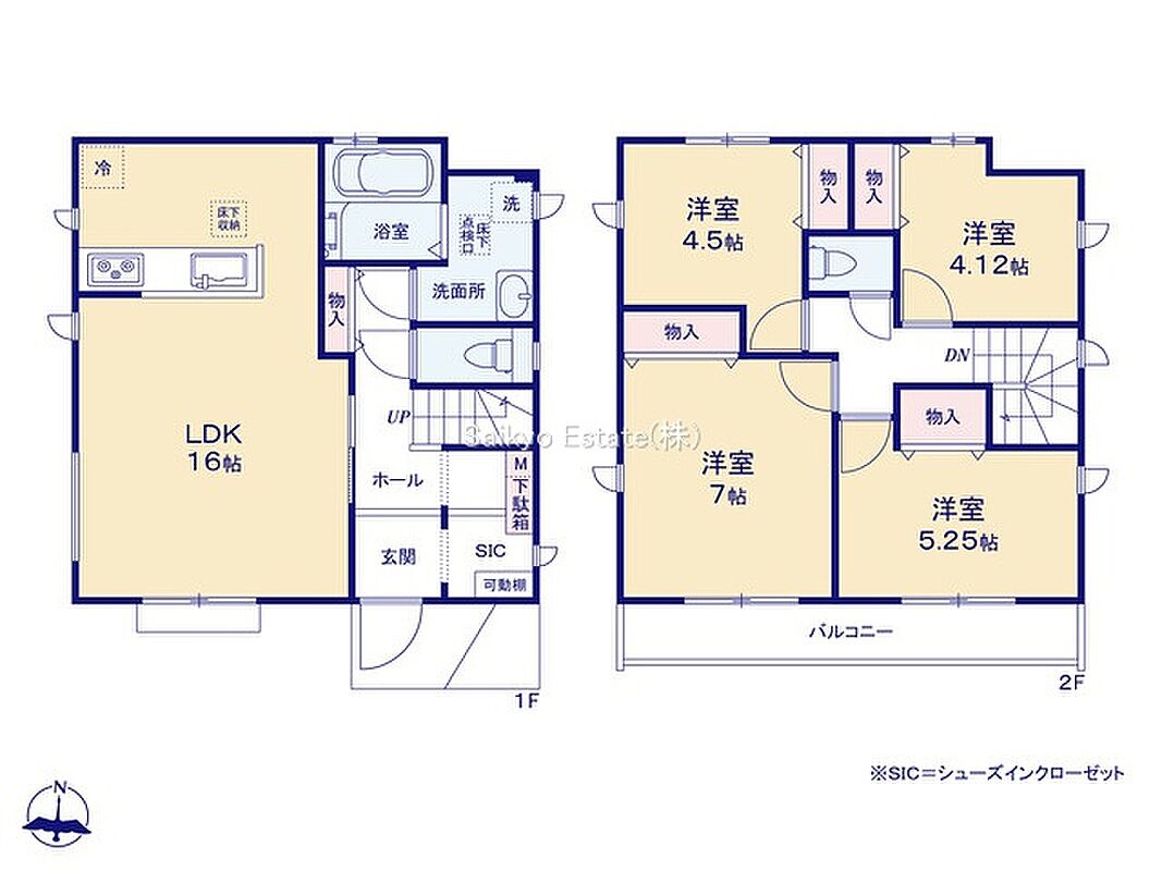 2号棟 間取り 4LDK+SIC 価格 5390万円 建物面積 91.90m2 土地面積 115.05m2 -