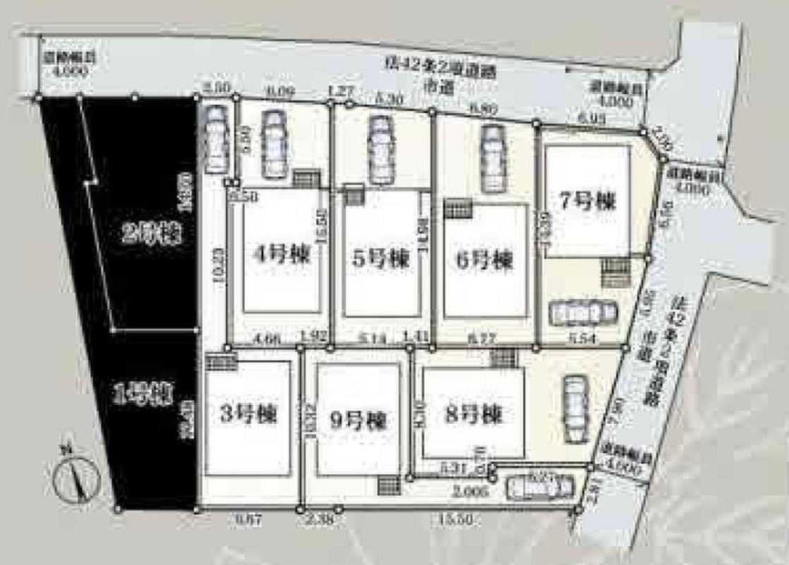 | 駐車場 | 1台 | 道路の幅員 | 東側4m公道、北側4m公道 |