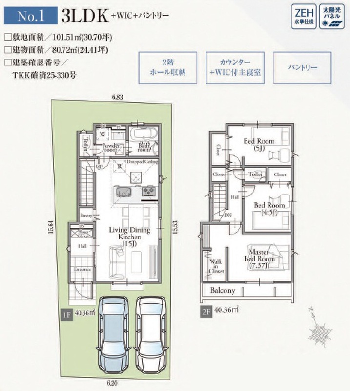 | 建物面積 | 80.72m2・82.80m2 | 土地面積 | 101.51m2・103.59m2 |