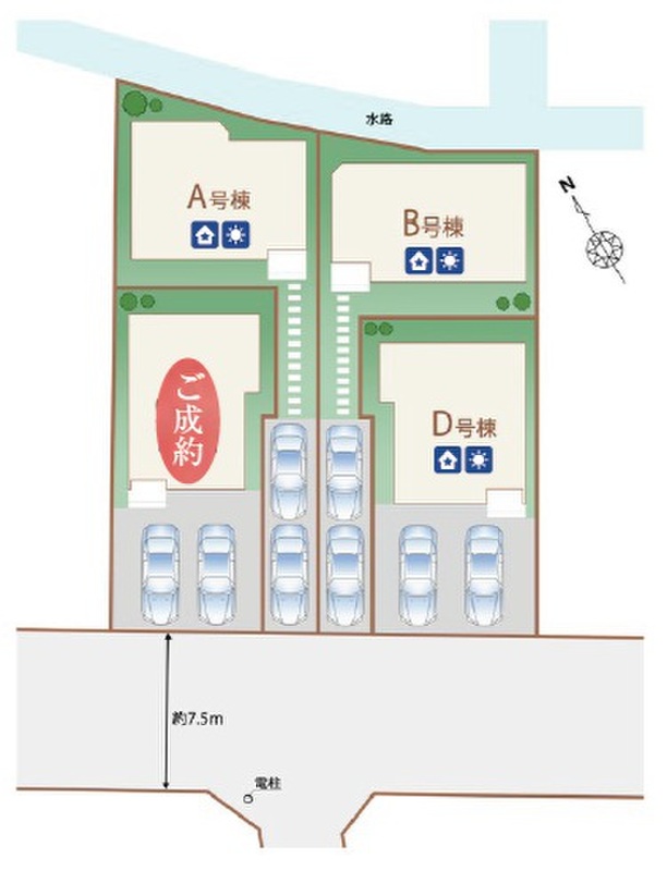 | 駐車場 | 1台 ~ 2台 | 道路の幅員 | 南側約7.5m公道 |
