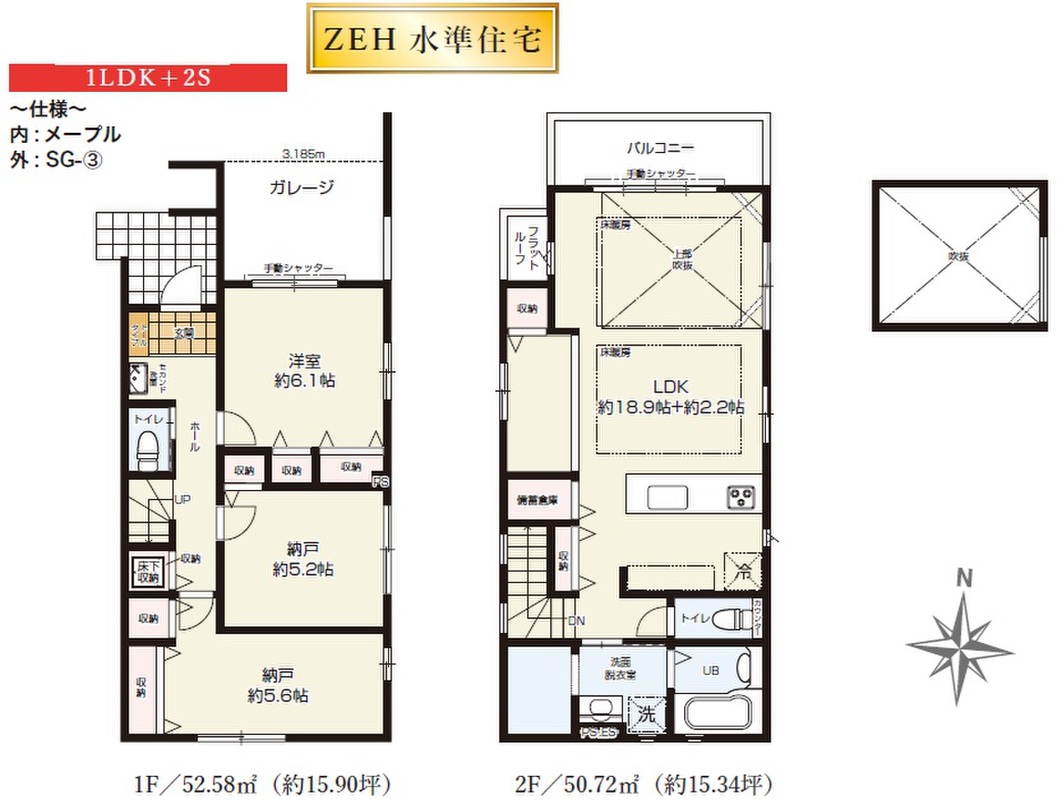 1号棟 間取り 1LDK+2S 価格 7999万円 建物面積 103.30m2 土地面積 92.85m2