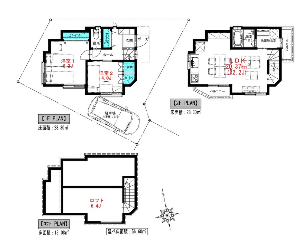 - 間取り 2LDK+ロフト 価格 4980万円 建物面積 56.60m2 土地面積 70.82m2 -