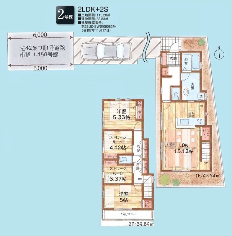 2号棟 間取り 2LDK+2S 価格 5990万円 建物面積 83.83m2 土地面積 115.28m2 -