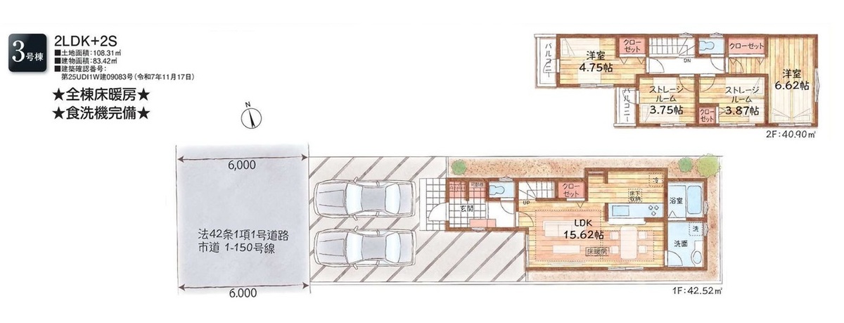 | 建物面積 | 83.42m2~83.83m2 | 土地面積 | 108.31m2~115.28m2 |